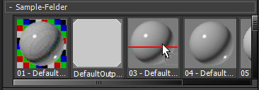 - Ziehen Sie die Schaltfläche "Umgebungs-Map" aus dem Dialogfeld "Umgebung und Effekte", und legen Sie sie auf ein unbenutztes Sample-Feld ab. Über dem Sample-Feld wird eine rote Leiste angezeigt, wenn Sie es über dem Map ablegen können.