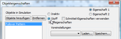 4. Klicken Sie im Dialogfeld "Objekteigenschaften" auf Pullovermuster, um den Eintrag zu markieren, und wählen Sie dann "Stoff".