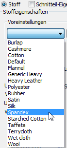 5. Wählen Sie in der Dropdown-Liste "Voreinstellungen" den Eintrag "Elasthan" aus.