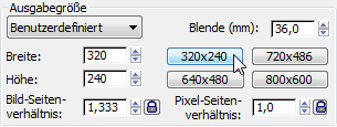 Ändern Sie im Bereich "Ausgabegröße" den Vorgabewert (640 x 480) auf 320 x 240.