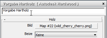 - Ziehen Sie den Autodesk Hardwood-Eintrag aus der Material-/Map-Übersicht in die aktive Ansicht. (Dieses Material findet sich auch unter "Materialien"
