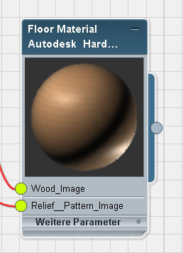 Nach dem Ändern des Bitmaps zeigt die Vorschau in der Titelleiste des Knotens des Floor Material die neue Holzmaserung an.