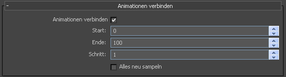 Die Option "Alle neu sampeln" reagiert auf den Zustand der Option "Animationen einbacken". Wenn die Option "Animationen einbacken" deaktiviert ist, steht die Option "Alle neu sampeln" nicht zur Verfügung.