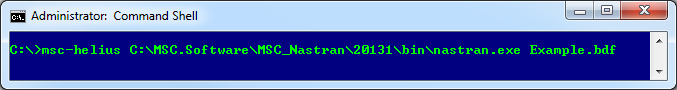 Anmerkung: Wenn Sie den Speicherort der Datei nastran.exe nicht kennen, geben Sie msc-helius in die Befehlsshell ein. Ihnen wird dann ein gültiger Pfad angezeigt.