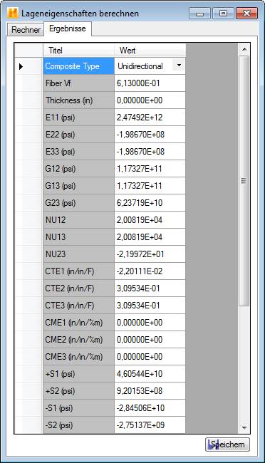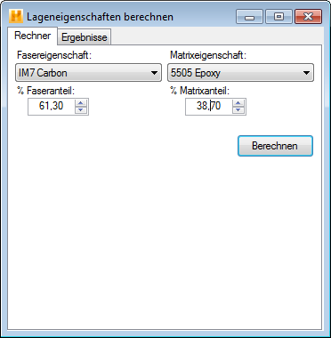 Mithilfe des im letzten Schritt berechneten Faservolumenanteils können wir nun die Laminat-Eigenschaften bestimmen.