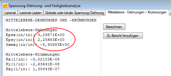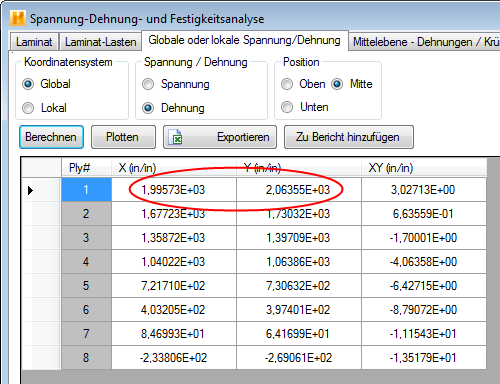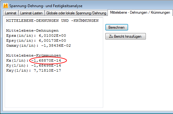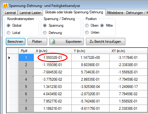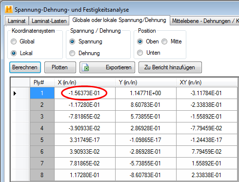 In diesem Fall ist das Laminat 0.04 Zoll dick, also z=-0.02 Zoll an der Oberseite des Laminats. Daraus ergibt sich: