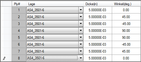 In diesem Beispiel besteht der erste Schritt in der Erstellung des Laminats und der Anwendung von lediglich der axialen Last (Nx).