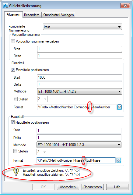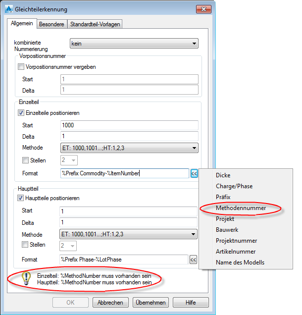- Die Variable Methodennummer (%MethodNumber) ist erforderlich. Wenn sie fehlt, wird am unteren Rand des Dialogfelds eine Warnung angezeigt.