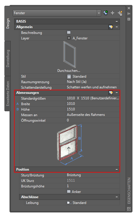 Wie möchten Sie das Fenster bemaßen… | Aktion… |