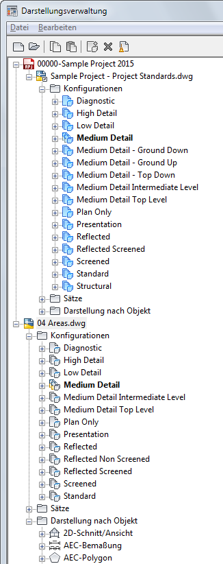 Sie können einzelne Komponenten des Darstellungssystems in einer Projektzeichnung synchronisieren.