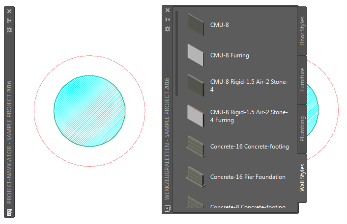Gehen Sie wie folgt vor, um den Werkzeugpalettensatz auszublenden, wenn Sie ihn nicht verwenden. Der Werkzeugpalettensatz wird ausgeblendet, wenn Sie den Cursor vom Palettensatz bewegen, sodass nur die Titelleiste sichtbar ist. Wenn Sie den Cursor wieder über der Titelleiste positionieren, wird der Werkzeugpalettensatz erneut eingeblendet.
