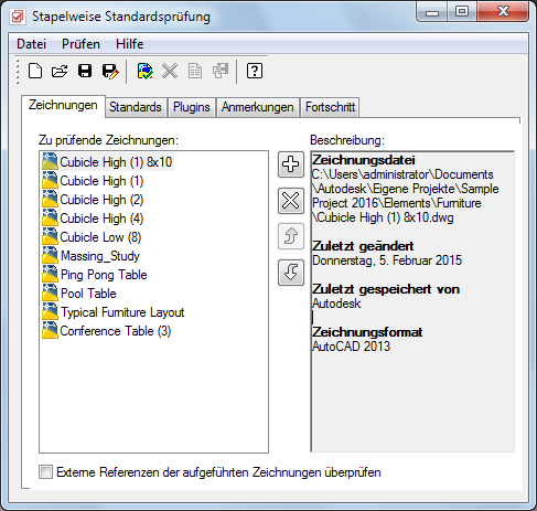 Die stapelweise Standardsprüfung für AutoCAD wird unabhängig von AutoCAD Architecture ausgeführt.