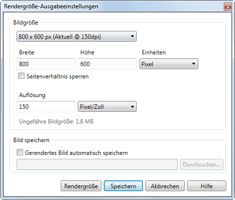 - Legt die Ausgabegröße und die Auflösung des gerenderten Bilds fest.