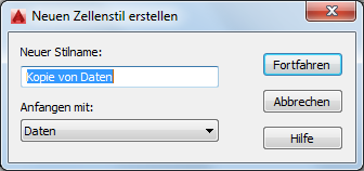Gibt einen Namen für einen neuen Zellenstil sowie einen vorhandenen Zellenstil an, auf dem der neue Stil basieren soll.