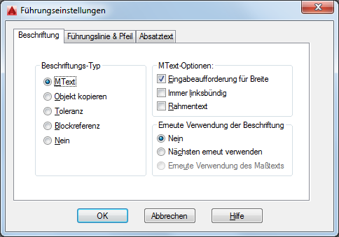 Optionen für die Wiederverwendung von Führungsmaßtext.