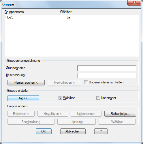 Zeigt die Namen vorhandener Gruppen an.