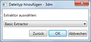 - Wählen Sie einen geeigneten Extraktor für den Dateityp aus. Der im Lieferumfang von Autodesk Content Service enthaltene vorgegebene Extraktor heißt Basic. Dieser indiziert die Eigenschaften, falls verfügbar.