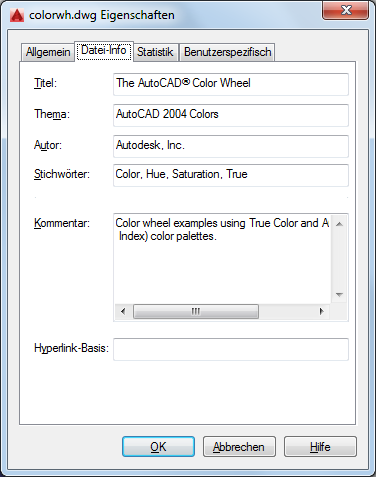 Gibt den Autor der Zeichnung an. Der Autorenname kann nur vom jeweiligen Benutzer eingegeben oder geändert werden. Wenn Sie einen anderen Autor eingeben möchten, löschen Sie den vorhandenen Namen, und geben Sie den neuen Namen ein.