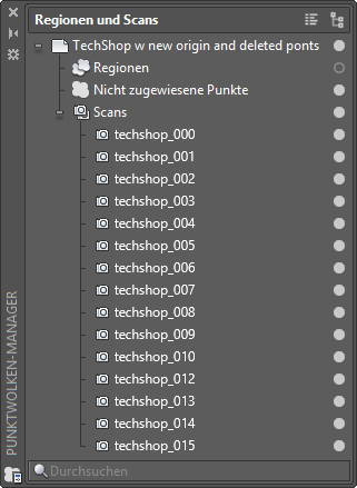 Sucht über den Namen nach einer Punktwolke, Region oder Scan-Datei.