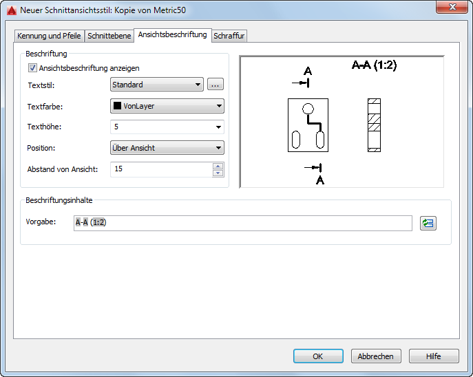 - Wenn diese Option ausgewählt ist, werden Ansichtsbeschriftungen für Schnittansichten angezeigt.