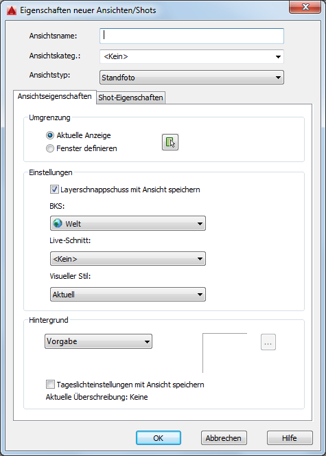 Dialogfeld Eigenschaften neuer Ansichten/Shots