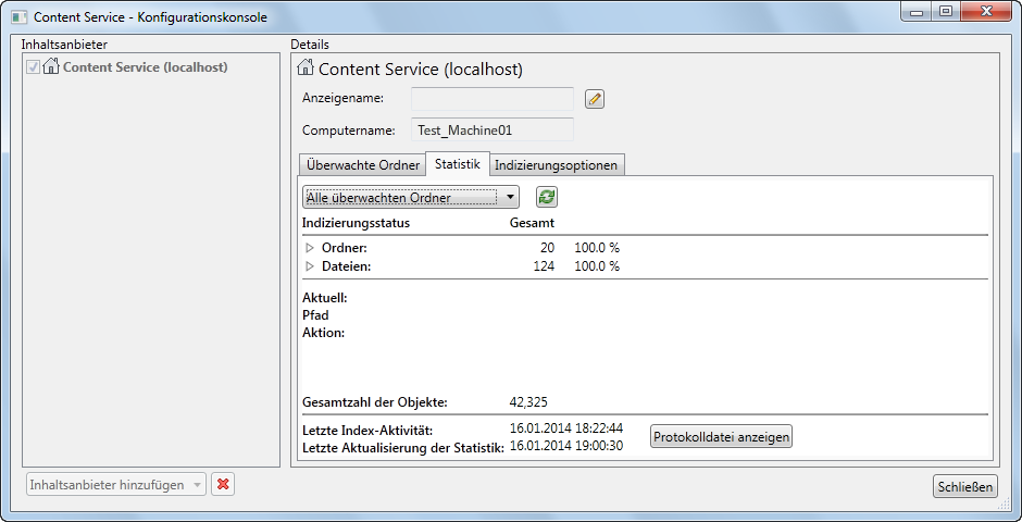 Statistikdaten werden alle acht Sekunden für lokale Ordner aktualisiert. Bei Netzwerkordnern müssen Sie die Daten manuell aktualisieren, indem Sie auf Aktualisieren