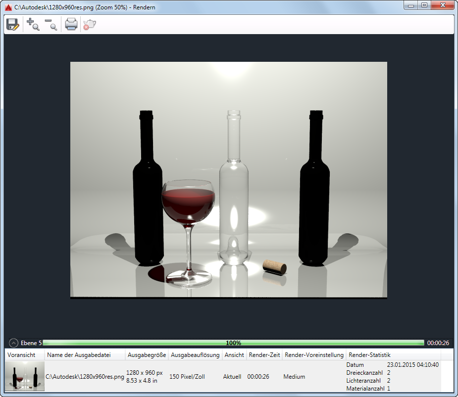 Die Renderausgabe aus einer Zeichnung wird immer im entsprechenden Renderfenster angezeigt.