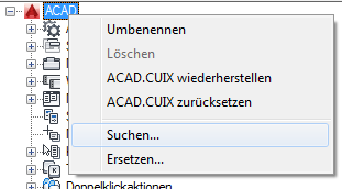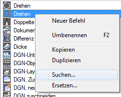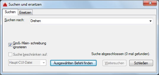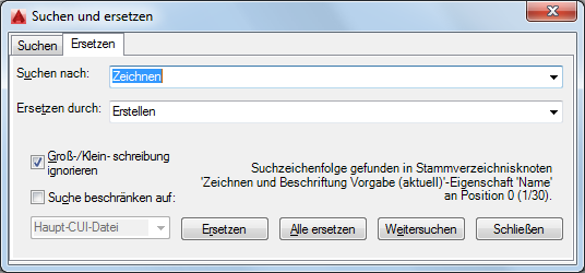 Es wird eine Meldung angezeigt, in der die Position des Befehls, seine genaue Position im Bereich Anpassungen in oder im Bereich Eigenschaften sowie die Anzahl der Vorkommen des Befehls angegeben wird.