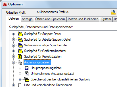 2. Klicken Sie im Dialogfeld Optionen auf der Registerkarte Dateien auf das Pluszeichen (+) neben Anpassungsdateien, um den Knoten zu erweitern.