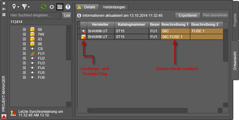 Die neue Registerkarte Ortsansicht im Projekt-Manager bietet eine vollständige Ansicht der Geräte und Verdrahtungen im aktiven Projekt. Betriebsmittel werden nach Anlagen- und Ortswerten sortiert.