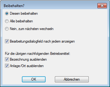 Deaktivieren Sie dieses Kontrollkästchen, um alle Stromlaufplan-, Schaltschrank- und einpoligen Referenzen herauszufiltern, wenn ein passendes einpoliges Betriebsmittel für ein Stromlaufplan-Betriebsmittel oder ein Schaltschrank-Grundriss vorhanden ist. Die Liste enthält nun nur Kennzeichnungen, für die keine übereinstimmenden einpoligen Betriebsmittel vorhanden sind.