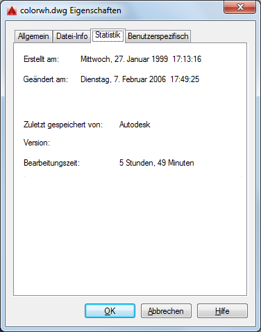 Diese Dateieigenschaften können bei der Suche nach Zeichnungen, die in einem bestimmten Zeitraum erstellt oder bearbeitet wurden, hilfreich sein.