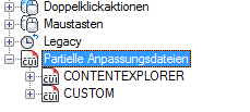 Partielle CUIx-Dateien, die in die Haupt-CUIx-Datei geladen wurden, werden unter dem Knoten Partielle Anpassungsdateien aufgeführt.