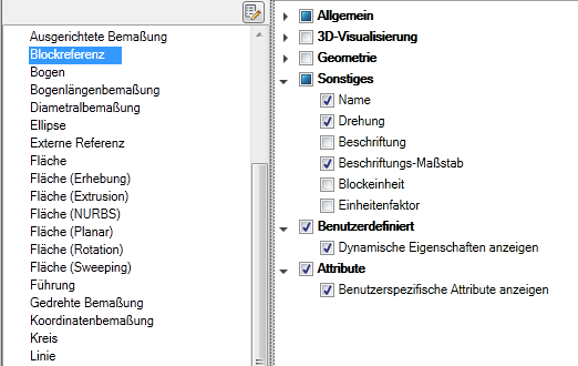 Steuern der Anzeige von benutzerdefinierten Eigenschaften und Attributen für Blockreferenzen