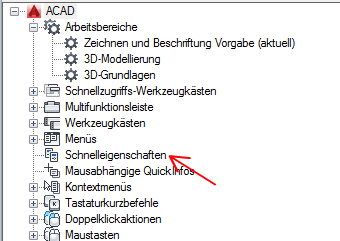 - Wählen Sie auf der Registerkarte Anpassen im Bereich Anpassungen in <Dateiname> die Option Schnelleigenschaften.