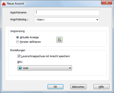 Nur für Modell- und Layoutansichten: Legt fest, welches BKS mit der neuen Ansicht gespeichert wird.