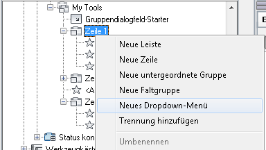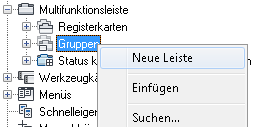 Unten in der Struktur der Multifunktionsleisten-Gruppen wird eine neue Gruppe (mit der Bezeichnung Gruppe1) angefügt.