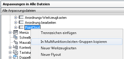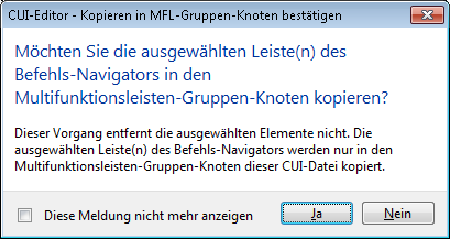 - Klicken Sie im Dialogfeld CUI-Editor - Kopieren in Multifunktionsleisten-Gruppen-Knoten bestätigen auf Ja.