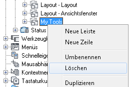 Achtung: Es gibt keine Möglichkeit, das Entfernen einer Multifunktionsleisten-Gruppe rückgängig zu machen. Wenn Sie die falsche Multifunktionsleisten-Gruppe entfernen, klicken Sie auf Abbrechen, um den CUI-Editor zu schließen und die vorgenommenen Änderungen zu speichern. Dadurch gehen jedoch alle anderen möglicherweise vorgenommenen Änderungen verloren.