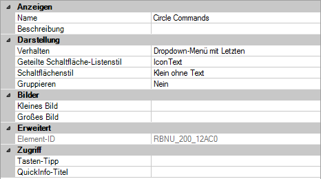 - Stellen Sie die Eigenschaften des Dropdown-Menüs wie gewünscht ein, um die Darstellung des Dropdown-Menüs und der Befehle unter dem Dropdown-Menü zu steuern.