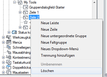 - Klicken Sie mit der rechten Maustaste auf die Zeile oder untergeordnete Gruppe, die Sie entfernen möchten. Klicken Sie auf Löschen.