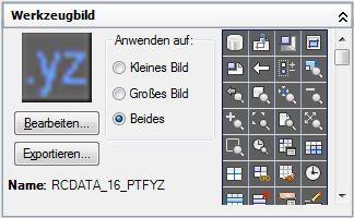 Anmerkung: Klicken Sie auf Importieren, um eine auf einem lokalen Netzlaufwerk gespeicherte Bilddatei zu importieren, um sie im Dialogfeld Werkzeugeditor zu bearbeiten und in der Arbeits-CUIx-Datei zu speichern.