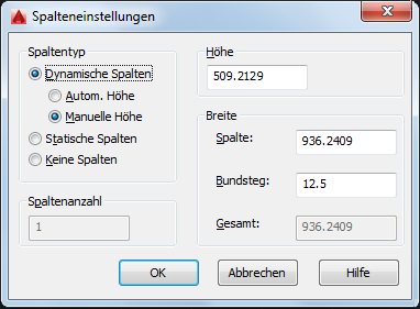 Gibt die Spalten- und Bundstegbreite an. Der Wert für die Bundstegbreite ist fünfmal so hoch wie die vorgegebene Texthöhe.