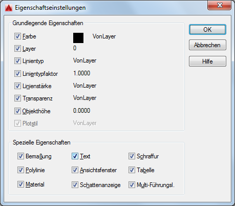 Hiermit geben Sie an, welche Basiseigenschaften und speziellen Eigenschaften aus dem Quellobjekt in die Zielobjekte kopiert werden sollen.