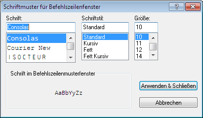 Dialogfeld Schriftmuster für Befehlszeilenfenster