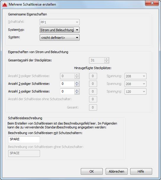 Allgemein oder Weitere | Geben Sie unter Anzahl Schaltkreise die Anzahl der zu erstellenden Schaltkreise ein. |