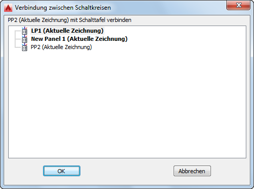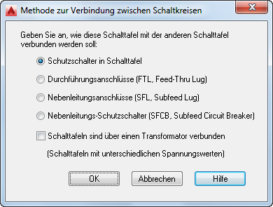 Nebenleitungsschalter | Die Schalttafel wird als Nebenleitungs-Schalttafel zu einem Schaltkreis mit Nebenleitungsschalter in der verknüpften Schalttafel hinzugefügt. |