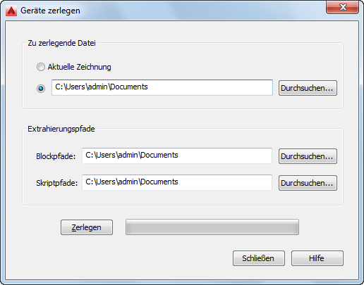 Umwandeln der Gerätestile in einer lokal gespeicherten Zeichnung | Klicken Sie auf das Optionsfeld neben dem Dateipfad, klicken Sie auf Durchsuchen, wählen Sie die gewünschte Zeichnungsdatei aus und klicken Sie auf Öffnen. |