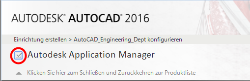 Beim Erstellen einer Einrichtung können Sie die Installation von Application Manager umgehen, indem Sie im Installationsprogramm die Auswahl von Application aufheben: