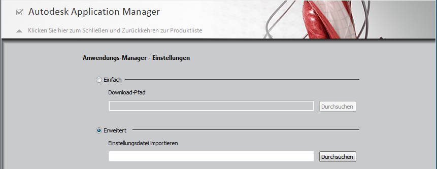 - Klicken Sie im Application Manager-Konfigurationsbereich auf Erweitert, und wechseln Sie zum Speicherort der INI-Datei mit den Einstellungen. Diese Datei wird dem Einrichtungs-Image hinzugefügt.